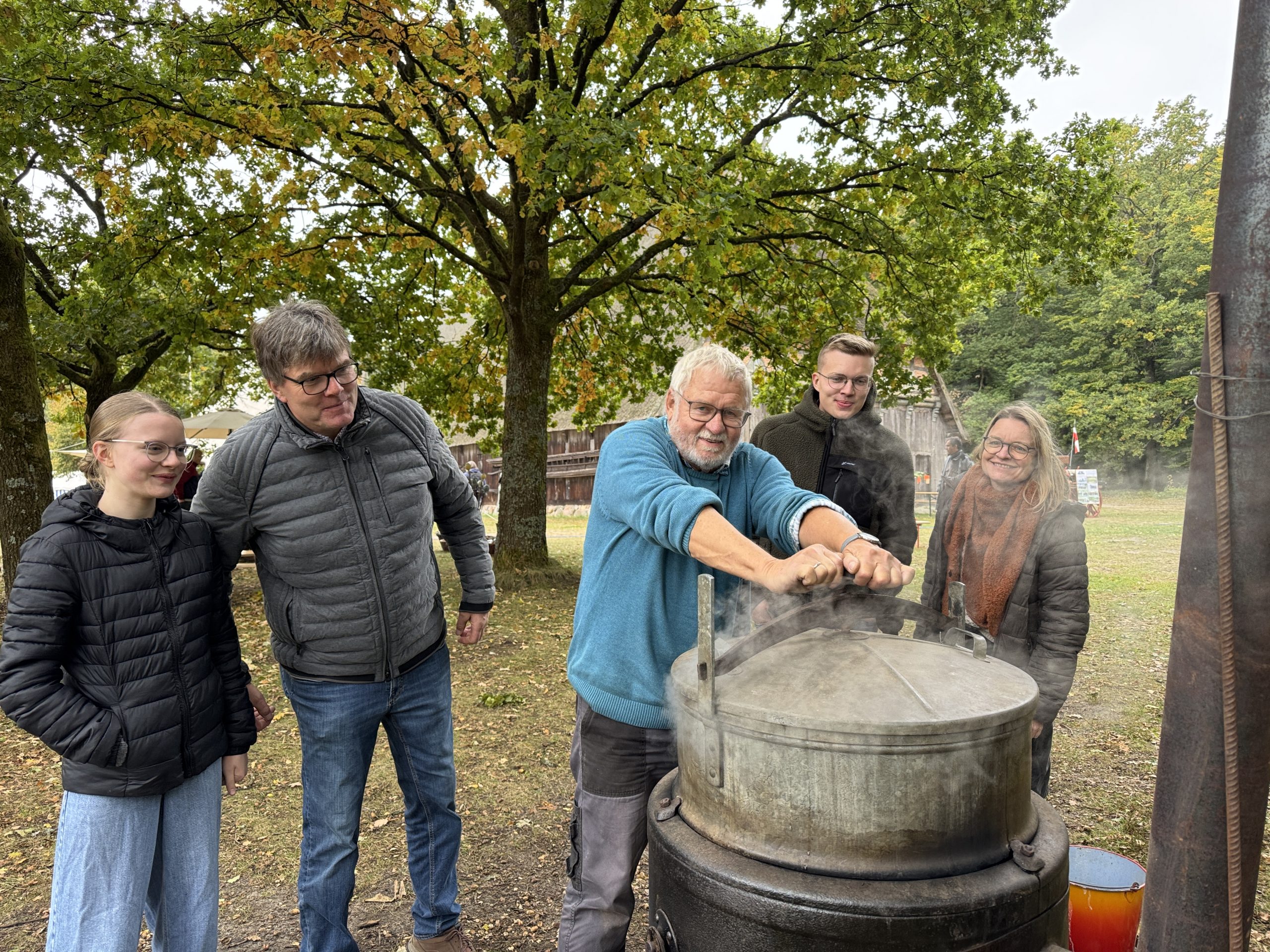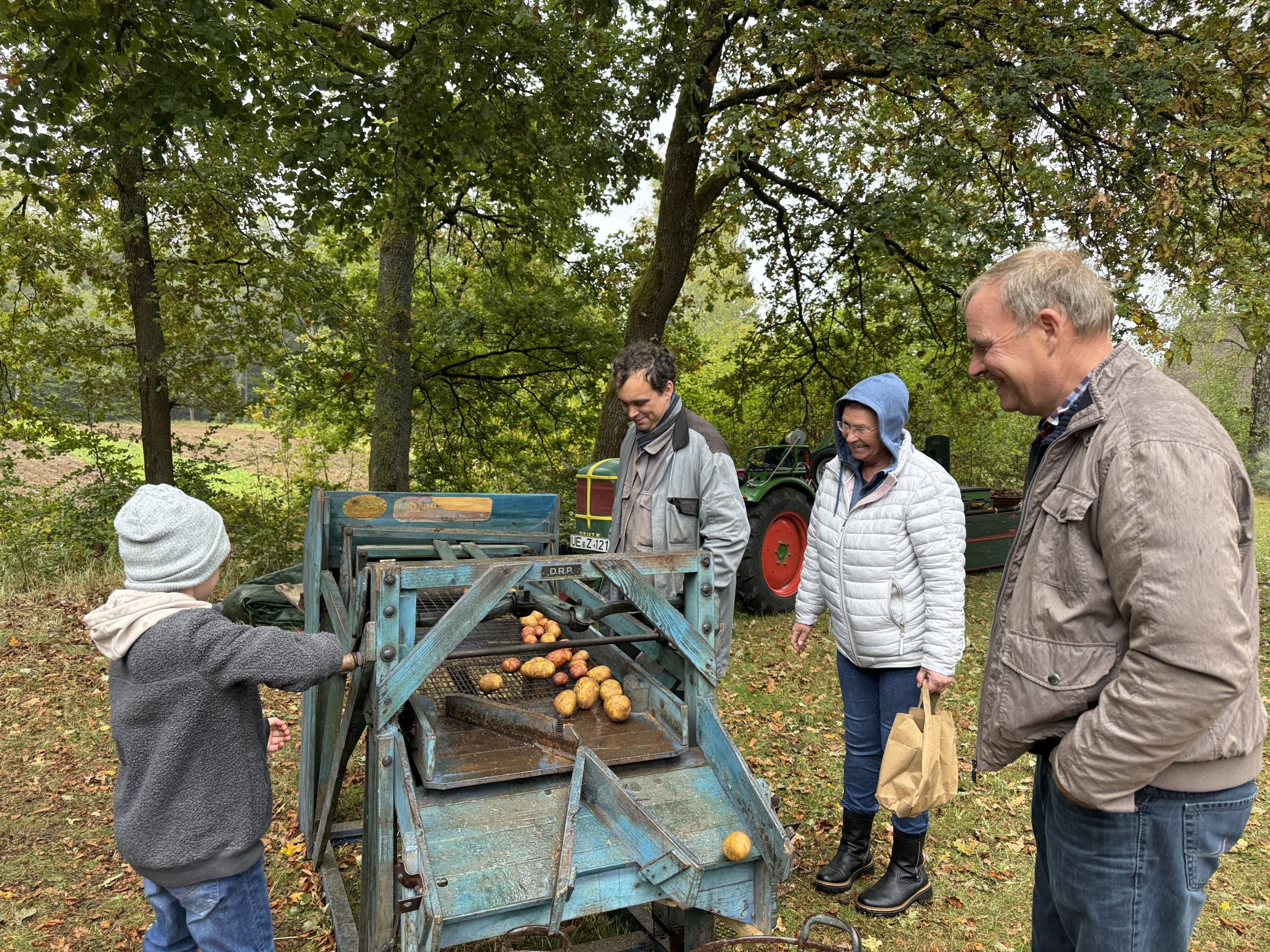 Dieses war den mehr als tausend Besuchenden des diesjährigen Erntedank- und Kartoffelfestes auf vielfältige Weise möglich. Es wurden Kartoffeln gerodet und im großen Dämpfer gekocht. Wer mochte, konnte gleich vor Ort leckere Pellkartoffeln mit Salz genießen – nur das Schälen musste selbst erledigt werden.