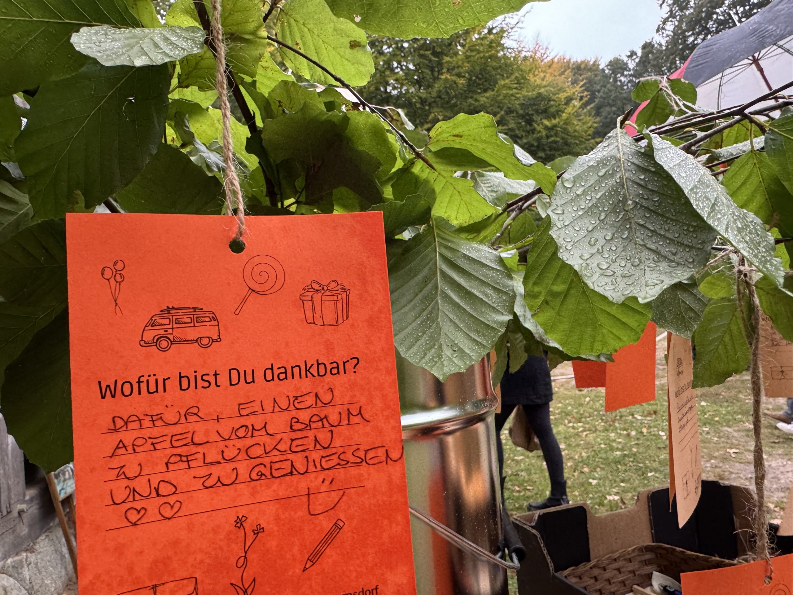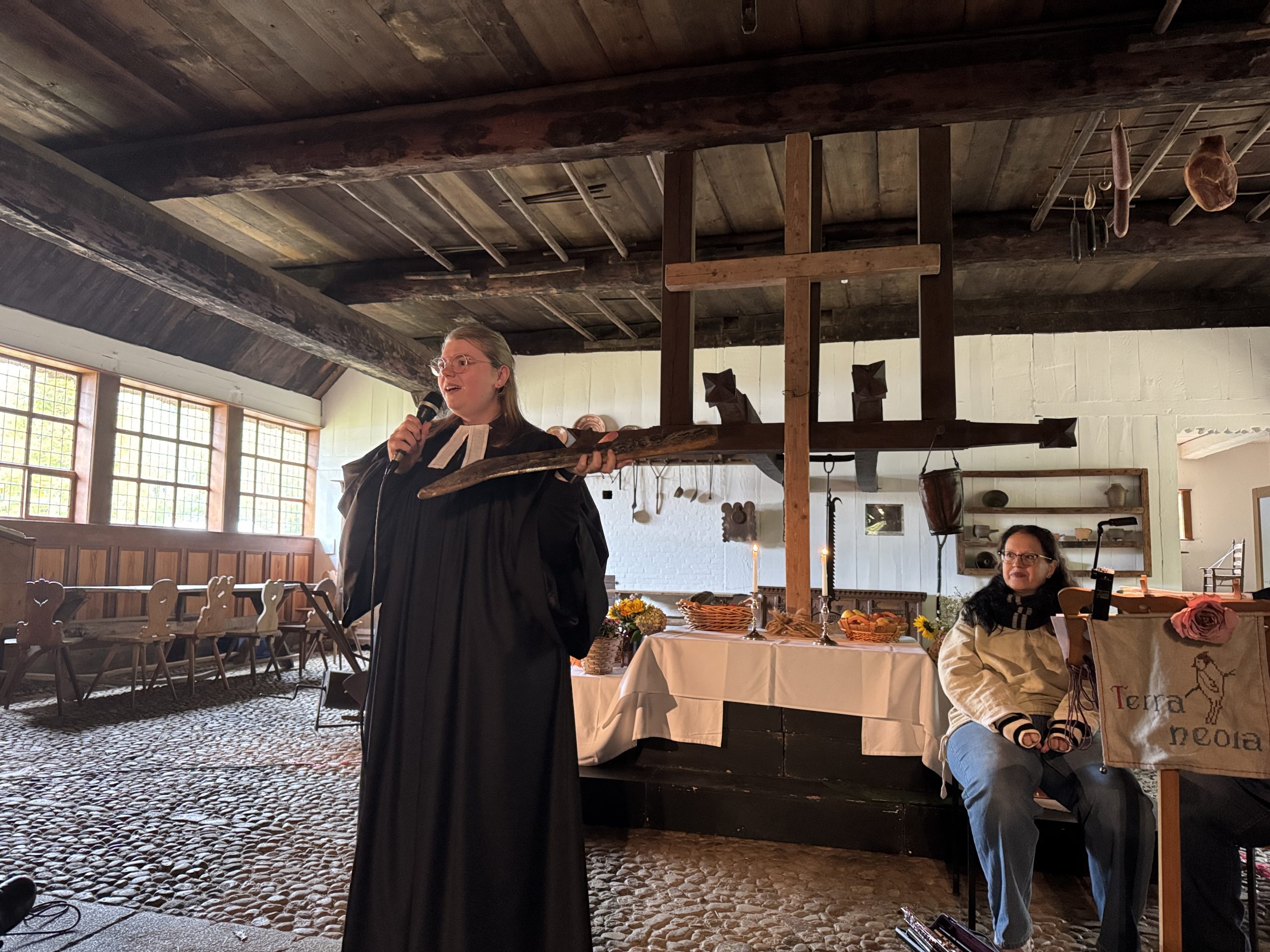 Der Erntedank-Gottesdienst fand im voll besetzten Brümmerhof statt. Pastorin Rika Hartmann machte mit dem Apostel Paulus Mut, in den Dank für Gottes Gaben auch den Dank an uns selbst nicht zu vergessen. „Einmal innehalten, sich eine Pause gönnen und auf sich achten – auch dies gehört zum Erntedankfest“, so die Pastorin. Musikalisch wurde der Gottesdienst vom Duo Terraneola begleitet.